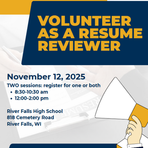 November 12 at RFHS- 2 sessions: 8:30 - 10:30 am; 12 - 2 pm Help our high school students get career-ready by reviewing and giving feedback on over 200 student...
